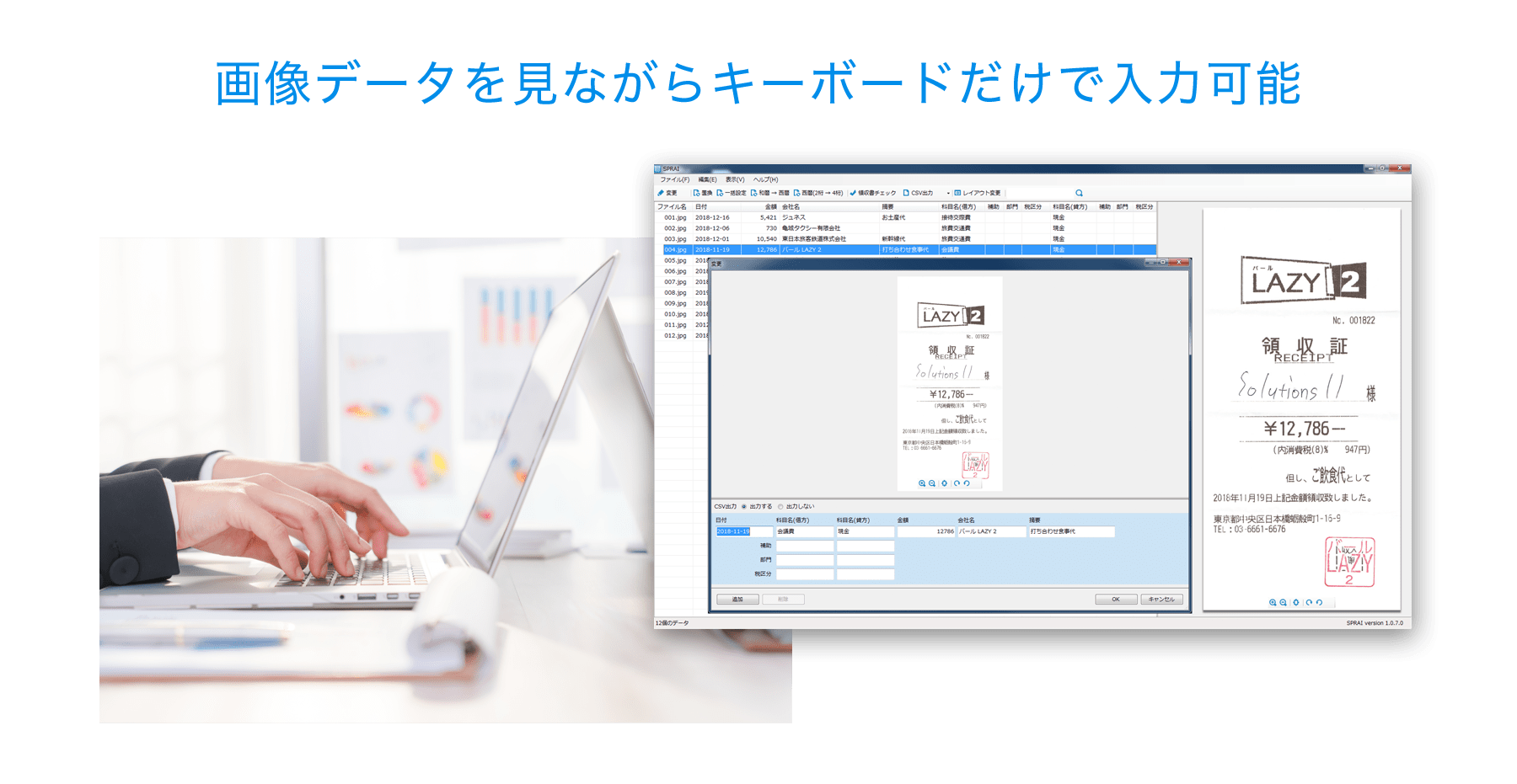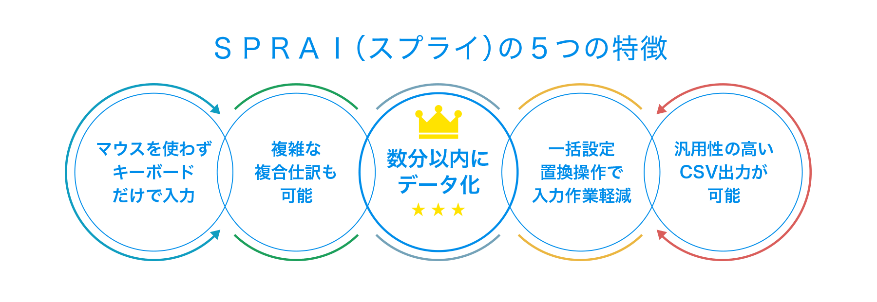 AI読取サービス SPRAI(スプライ)は、通帳と領収書(手書きを含む)をAIで解析して読み取るサービスです。一般に普及するOCRでは通帳と手書きの領収書は正確に読み取れません。通帳と領収書を人間の10倍超のスピードで入力するAIを利用し、事務所内における会計入力業務を大幅に改善します。
