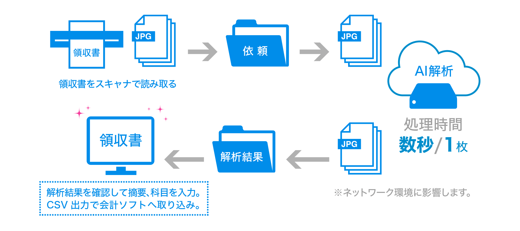 スキャナー読み取りによりデジタル化(JPEG形式のみ)された領収書、預貯金通帳の画像をAIにより読み取りおよび解析を行い、黒字記帳された記載内容をテキストデータに変換します。 - サービスの仕様変更