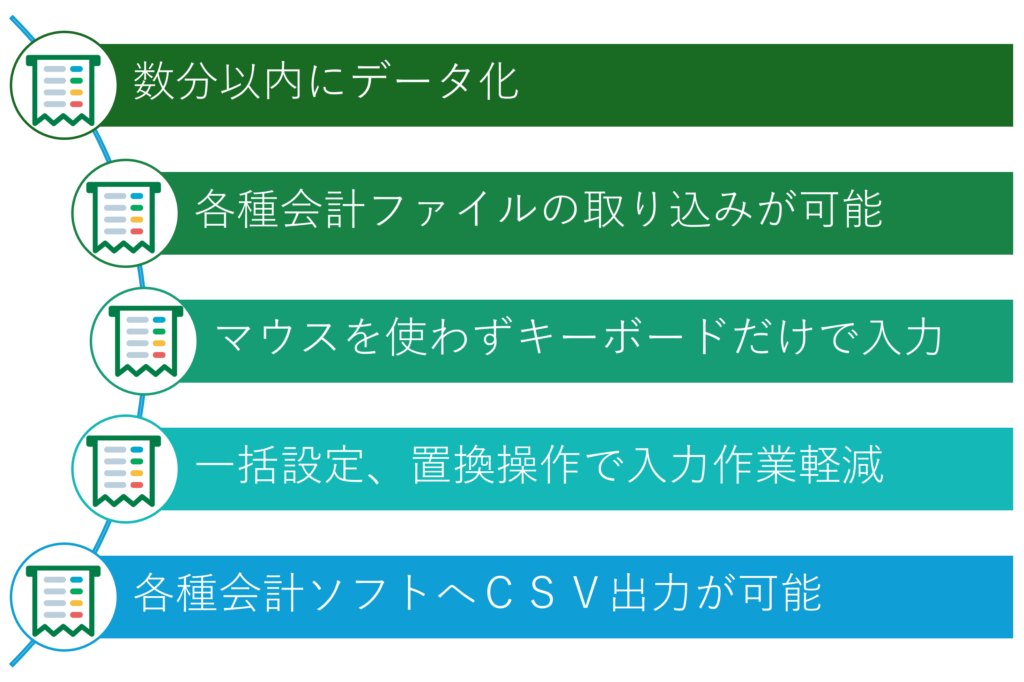会計データコンバーターは金融機関、クレジットカードの会計ファイル(CSV形式)を取り込み、SPRAIの一括設定機能・置換・並べ替え機能を利用することで手間なく仕訳データを作成できます。作成した仕訳データはお使いの会計ソフトにインポートすることができます。